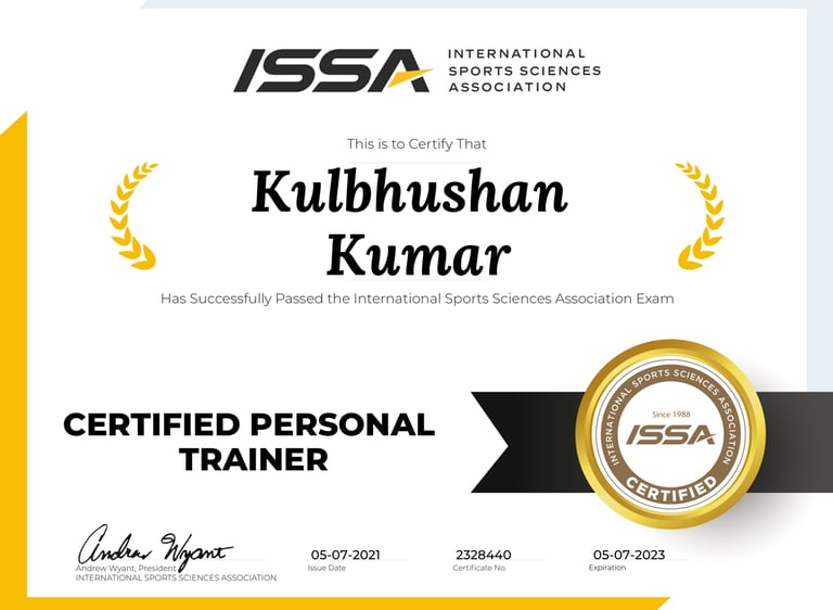 At Formula To Fit, we believe that health is the foundation of a fulfilling life. Led by Kulbhushan, a certified personal trainer from ISSA (International Sports Science Association) and an experienced fitness coach, our mission is to empower individuals to transform their bodies and minds through sustainable fitness and nutrition practices.